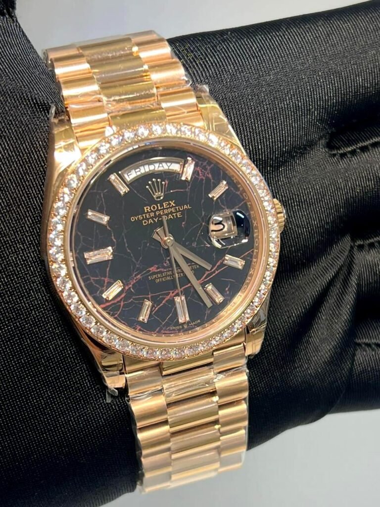 Rolex Day-Date 40mm brown Dial With Stone Stoned Bezel super clone watches in dubai