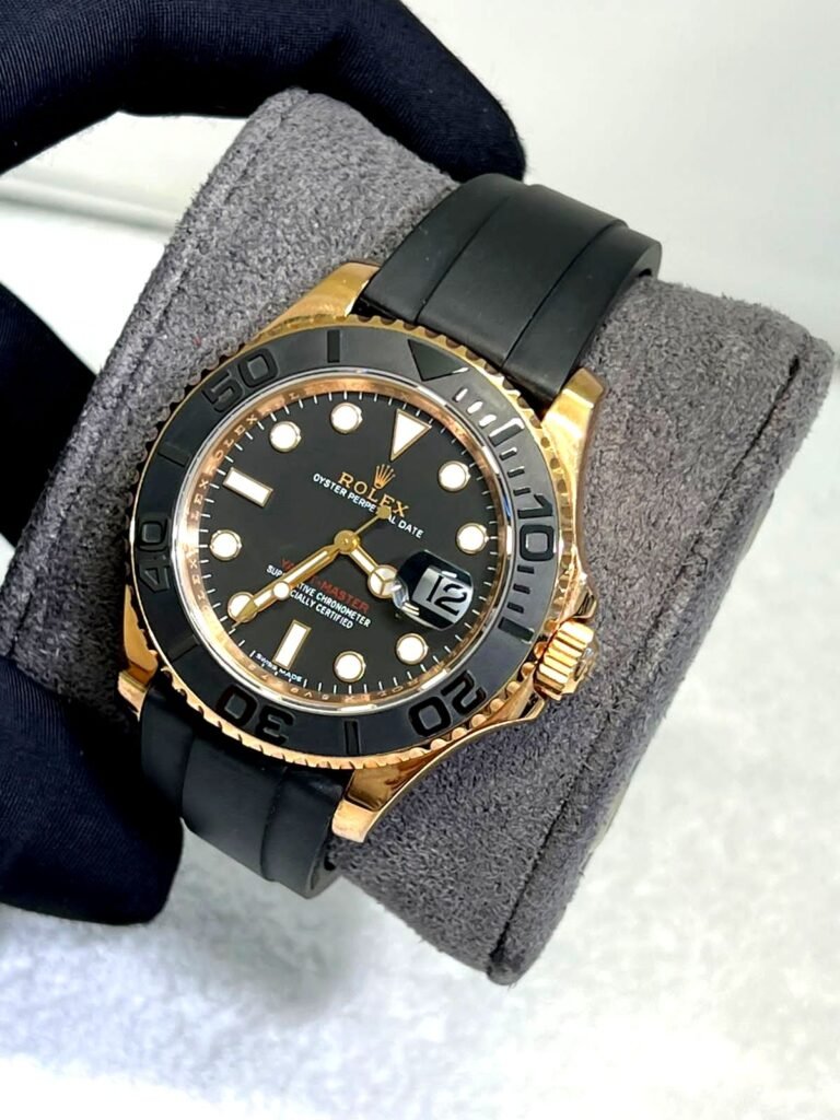 Rolex Yacht Master Black Rubber Strap rose gold bezel super clone watches in dubai