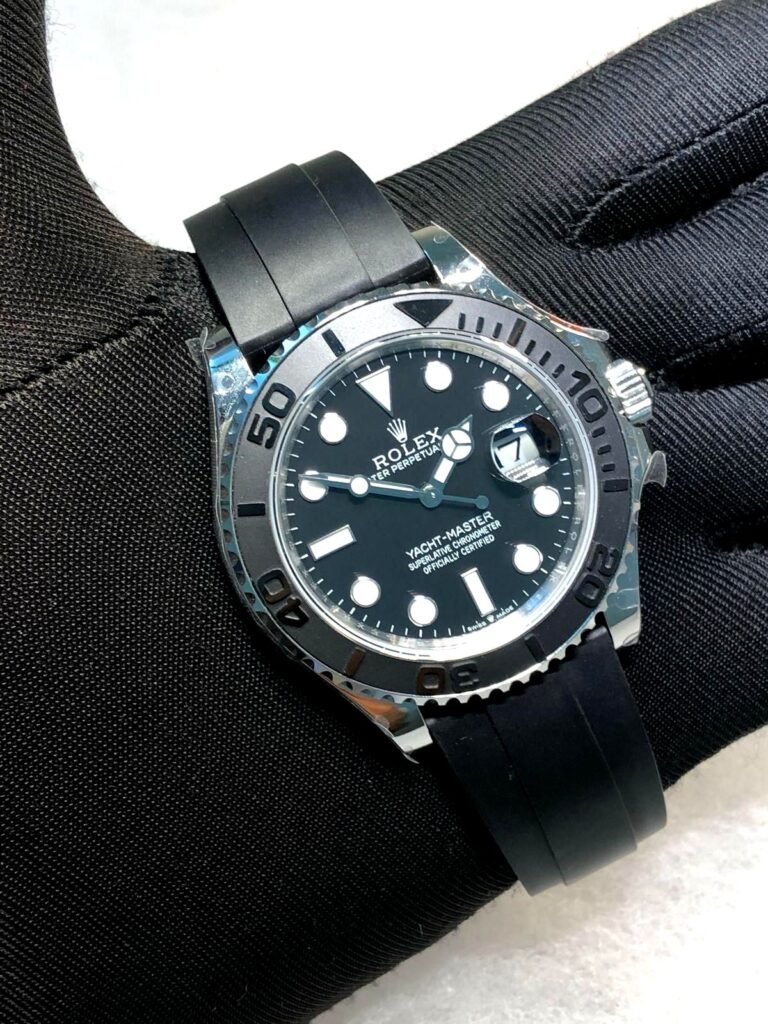 Rolex Yacht-Master Black dial silver bezel rubber strap super clone watches in dubai