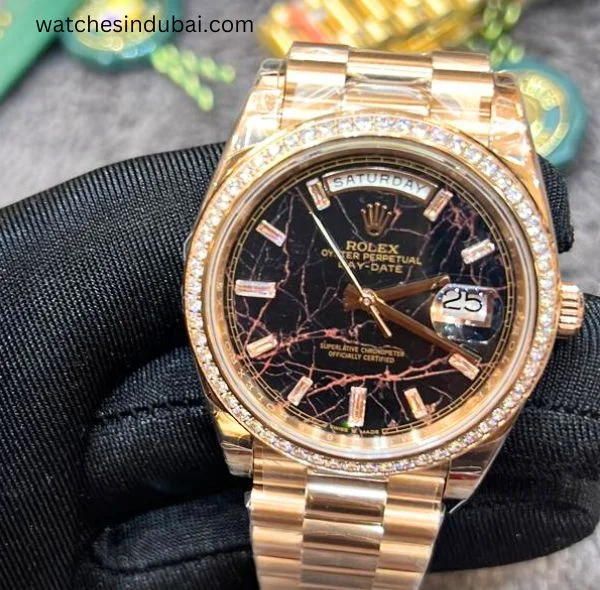 Rolex 36 mm Day Date Rose Gold Eisenkiesel dial With Roman Numeral womens watch
