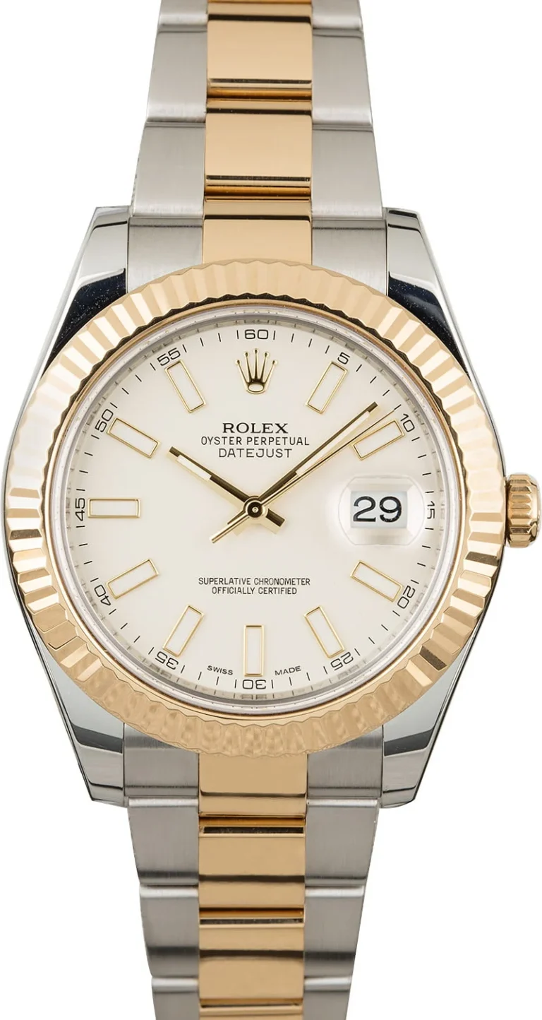Rolex Datejust White Dial Dual Tone Swiss ETA 7750 Valjoux Movement Watch