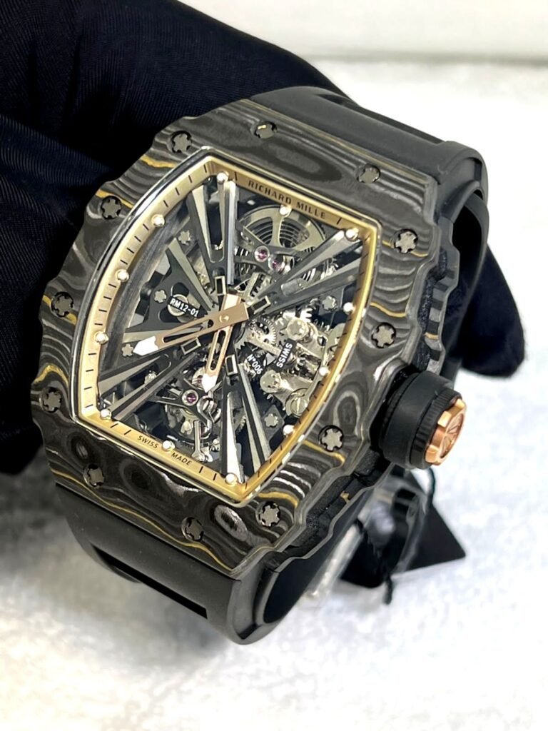 Richard Mille RM 12-01 black and gold bazel super clone replica watches in Dubai