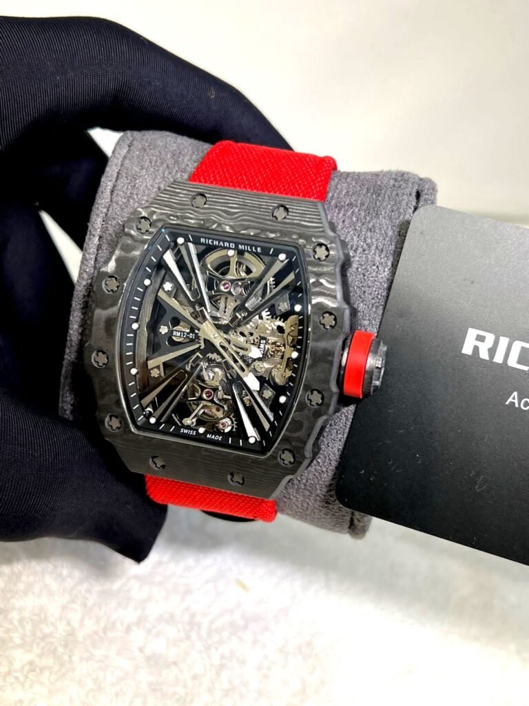 Richard Mille RM 12-01 black watch with red velcro strap super clone replica watches in Dubai