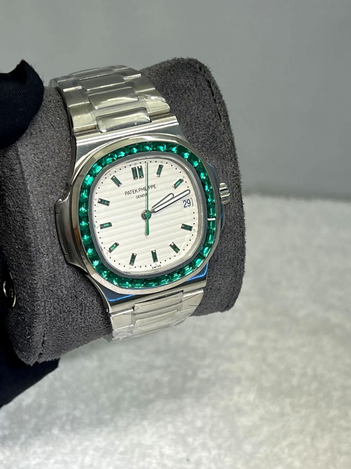 Patek Philippe Nautilus 5711/112P Platinum white dial with green Rubies Bezel super clone watches in dubai