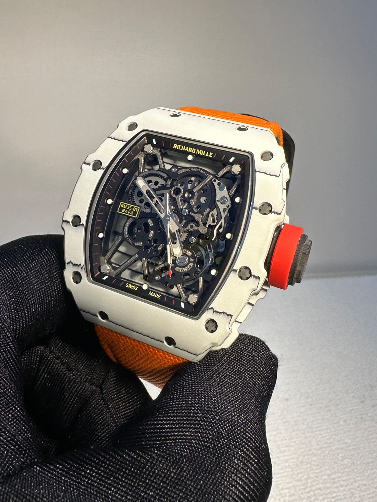 Richard Mille RM 35-01 rafa white bazel with orange velcro strap super clone replica watches in Dubai